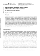 ican beliefs it is disrespectful to criticise authoritative figures. On this basis, in some African countries journalism students have opposed criticism of heads of states, arguing that it is un-African to do so. On the other hand, journalism academics and practitioners have condemned and dismissed the concept of ‘respect’ in African culture as undemocratic and inimical to the role of journalism as a tool for democracy. This article argues that a critical examination of the concept of ‘respect’ in the African cultural context reveals that historically, in traditional Africa, ‘respect’ was not equated to obsequiousness by the citizens in their encounter with power. Sycophancy and submission in the face of power were invoked in the name of a falsified version of African culture by postcolonial power-hungry dictators, who sought to entrench themselves by distorting African culture for self-serving purposes." (Abstract)