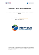 cial dire straits before the pandemic, will close their doors permanently. The pandemic saw countries invoking shutdowns that restricted movement and, in some cases, resulted in companies closing causing loss of jobs and income and impacting on media revenues from newspapers sales and advertising. Findings also show that the pandemic had various effects on journalism quality, mental integrity of journalists and operational problems that rendered the work of journalists difficult [...] The findings reveal that the COVID-19 restrictions denied journalists and citizens the rights to express themselves freely, thereby interfering with the rights of citizens to access critical information that could have helped them to make informed decisions as well as fight stigma and discrimination during the lockdowns." (Executive summary)