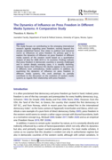 dom in different media systems of the western world based on a quantitative analysis of data for 2008–2019 in 16 countries. Findings indicate that press freedom in democratic countries is severely challenged and in certain deeply worrying cases, it is steadily declining, whereas factors that influence this decline appear to be common in different, even contradictory, media systems. In addition, by examining the dynamics of influence on press freedom in different media systems, this work attempts to partially contribute to the discussion on the evolution of western media systems as regards their relationship with press freedom." (Abstract)