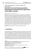 involved. The findings indicate that journalists who cover economic crisis-related incidents suffer specific symptoms of trauma. As such, the study re-conceptualizes the economic crisis as primarily affective for media workers, it establishes a direct correlation between the economic crisis and emotional trauma, and provides an insight into the kind of trauma that stems from covering austerity and its impact on society. A regression analysis of symptoms indicates trauma journalism as an emerging field of research into the economic crisis." (Abstract)