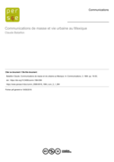 au Mexique est prise en considération dans cette étude — Dans sa conclusion, l'auteur insiste sur le fait que le réseau de communication existe et qu'il peut être un moyen d'éducation et de modernisation puissant. Paru en espagnol dans la revue « Ciencias Políticas y Sociales », Ano IX, n 32, Abril-Junio, 1963" (Jean-Marie Van Bol, Abdelfattah Fakhfakh: The use of mass media in the developing countries. Brussels: CIDESA, 1971 Nr. 203, topic code 072.1)