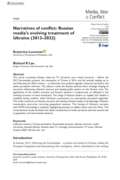 tion intersect. The authors reveal the Russian political elite’s strategic shaping of narratives, influencing collective memory and swaying public opinion on the Ukraine crisis. The significance of the conflict narrative and Russia’s position is underscored, as reflected in the evolving structure of news broadcasts. The image of Russian leaders as capable and reliable is amplified during conflicts, while Ukrainian counterparts are persistently portrayed negatively. The media constructs an identity narrative that elevates Russian leaders and disparages Western counterparts post-crisis, mirroring geopolitical tensions. The framing of Ukraine’s narrative with WWII terminology is analyzed, highlighting attempts to deflect blame onto the West. This comprehensive study elucidates the subtle complexities of media narratives and their pivotal role in geopolitics and international relations." (Abstract)