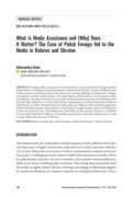 tries’ media systems. The study builds on the literature concerning the media, development and democratization, in particular looking at media assistance as both democratic aid and public diplomacy. It reveals that Poland’s approaches to media development in Belarus and Ukraine do differ: Poland mainly provides autocratic Belarus with technical support for media established outside of that country, while clearly focusing on media capacity development in democratizing Ukraine. The findings show that Polish media assistance, however, is unlikely to boost media freedom in Belarus as is usually expected as an outcome of democratic aid and is under-financed in the case of Ukraine." (Abstract)