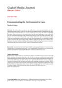 "This article reflects experiences and results from an environmental education and communication strategy (EECS) as part of a Lao-German development project of Gesellschaft für Internationale Zusammenarbeit (GIZ) over a 10-year period from 2011 to 2021. The article is divided into four parts. First