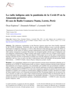ribuir a paliar y reducir los impactos de la pandemia. En este artículo analizamos un proyecto implementado para enfrentar la pandemia de la COVID-19 así como otras emergencias sanitarias en general. Este proyecto fue diseñado en conjunto con el equipo de comunicadores indígenas de Radio Ucamara, ubicada en la ciudad de Nauta (región Loreto), en la Amazonía nororiental del Perú. El principal objetivo de este proyecto fue el de convertir a la radio en un centro o hub comunicacional que permita el flujo de información sobre la situación de salud de las comunidades indígenas a las autoridades regionales, y viceversa, de tal manera que permita una atención en salud primaria oportuna y culturalmente pertinente." (Resumen)