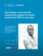tal news organization is a fundraising powerhouse. In 2019, Sahan Journal brought in nearly $500,000 from supporters, including contributions from foundations and individuals. In 2020, it raised over $770,000 in total revenue, more than a 50% increase from the year before. And as of July 2021, it’s up to $1,240,000 in revenue. Compared with other local and state news outlets also founded in 2019, Sahan Journal has brought in roughly quadruple the median amount of revenue. And there’s more: Sahan Journal has dramatically grown its audience. In its first year of publication, Sahan Journal’s monthly uniques more than quadrupled and its email newsletter subscribers increased by 1,400%. And, as the audience grew, so did individual donations. The number of donors more than tripled from 253 in 2019 to 785 in 2020. One of the most important ways that Sahan Journal has achieved such financial success is by participating in NewsMatch, a collective fundraising campaign that pools matching gifts from national, regional, and local funders to inspire millions of small donations to support nonprofit journalism. During its first NewsMatch campaign, from Nov. 1 to Dec. 31, 2019, Sahan Journal raised $25,500 in individual donations. The following year, the nonprofit raised more than $58,000 in eligible donations during NewsMatch and—more notably—leveraged the program learnings to establish best fundraising practices and launch its own small-dollar donor fundraising campaigns. In total, Sahan Journal raised $110,000 from individual giving in 2020. Organizations like Sahan Journal that participate in NewsMatch don’t just receive matching funds. As part of the program, they are required to be members of the Institute for Nonprofit News (INN), which means they participate alongside a cohort of hundreds of other nonprofit news outlets. They also receive training resources and fundraising support from INN and learning partners like the News Revenue Hub. Altogether, participating organizations receive unrestricted financial support, new skills and tools to strengthen fundraising capabilities, and valuable engagement with supporters who care about quality news. This case study outlines Mukhtar’s vision, details how he and his staff have raised funds, and includes advice and tips for other news outlets looking to build support from individual donors and major funders." (Pages 1-2)