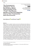 earch, this study scrutinizes how an audience group with migration background, who lived the first part of their lives under authoritarian rule but then relocated to a democracy, negotiates trust in their multilingual, transnational news environments. Specifically, we conducted semistructured interviews with forty-two Russian-speaking first-generation migrants living in Germany in 2021. As we find, distinct understandings of the concept of “truth” played a pivotal role in how our participants negotiated trust in their transnational news environments. We distinguish broadly two understandings of “truth”: (1) “truth” as a category grounded in factual evidence and (2) “truth” as a nonevidence based category grounded in values, emotions, or identities. Illustrative for the second understanding, some participants felt a strong moral obligation to believe Kremlin-sponsored media as they perceived these organizations as representing their homeland, independently of whether their news coverage was factually accurate or not. The two understandings of “truth” also affected how and where participants sought for what they considered the “truth.” In the “Discussion” section, we argue that particularly the non-evidence-based truth-understandings formulated by our participants, and the ensuing truth-seeking strategies are conducive to the reach and persuasive impact of Kremlin-sponsored content among Russian speakers living abroad." (Abstract)