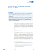informieren sich mindestens wöchentlich. Die sog. etablierten Medien erfüllen diesen Bedarf nur (noch) bedingt, weil nur 60 % der Befragten die für sie relevanten Themen aufgegriffen sehen. 34 % sehen ihre Themen nicht repräsentiert. Vertrauen: Der Info-Monitor belegt einen klaren Zusammenhang zwischen Medienvertrauen und Demokratiezufriedenheit: Von den etablierten Medien Überzeugte (22 %) und diese kritisch Betrachtende (45 %) sind meist auch mit der Demokratie in Deutschland zufrieden. Skeptische (26 %) und Ablehnende (7 %) äußern häufiger systemkritische Ansichten. Nutzungsmuster und Medienvertrauen dieser Gruppen variieren stark: Von den etablierten Medien Überzeugte bevorzugen öffentlich-rechtliche Angebote und Tageszeitungen, Skeptische nutzen deutlich häufiger Suchmaschinen, Soziale und sog. alternative Medien. Ablehnende vertrauen vor allem Videoplattformen, sog. alternative Medien und Suchmaschinen. Skeptische vertrauen vor allem öffentlich-rechtlichen Angeboten, Informationen der Tageszeitungen und von privaten Radiosendern. Vertrauenswürdigkeit sozialer Medien: Die nicht gezielte Informationsnutzung zum aktuellen Zeitgeschehen überwiegt. Besonders stark ausgeprägt ist die Nebenbei-Nutzung bei Sozialen Medien, die vor allem für Jüngere eine wichtige Informationsquelle darstellen. Die Vertrauenswürdigkeit von Sozialen Medien als Nachrichtenquelle fällt gleichzeitig gering aus. Die große Mehrheit sieht in Personalisierung, Desinformation und Hassrede eine Bedrohung für Gesellschaft und Demokratie - und findet, dass die Anbieter der Social-Media-Plattformen zu wenig gegen diese Phänomene tun." (Auf einen Blick, Seite 2)