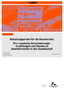 pro-russischen Verschwörungserzählungen in der deutschen Bevölkerung signifikant an. Mit 19 % stimmte fast jede:r Fünfte der Aussage zu, dass der russische Angriffskrieg eine alternativlose Reaktion Russlands auf die Provokation der NATO wäre. 21 % stimmten dieser Aussage teilweise zu. Im April lag die Zustimmung hier bei 12 % und die teils-teils-Antwort bei 17 %. Den zweithöchsten Zustimmungswert der abgefragten Items erreichte die Aussage, Putin würde gegen eine globale Elite vorgehen, die im Hintergrund die Fäden zöge. Mit 18 % im Vergleich zu 12 % im April nahm diese Aussage um 6 Prozentpunkte zu. Die teils-teils-Antworten stiegen mit 26 % im Vergleich zu 20 % im April um 6 Prozentpunkte an." (Seite 1)