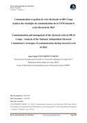 cte, cet article démontre ce paradoxe s’explique par le fait que la CENI a bien managé avec la de communication visant l’intercompréhension à travers le two step flow of communication. En effet, au lieu de s’adresser aux contestataires de droit, les candidats, elle s’est plutôt adressée à l’opinion publique. Mais pour bien atteindre cette dernière, elle est passée par les confessions religieuses, la MOE CENCO- ECC notamment, dont elle s’est servie comme boucliers en même temps qu’elle les neutralisait à travers une subtile dynamique adaptation-résilience. Mais attention ! Certains éléments qui fondent le dialogue, à savoir la vérité : la justesse, la sincérité et la pertinence ont été bafoués. La crise reste donc latente." (Abstract)