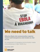 "Interviews with health communicators and residents in September 2019 found that language barriers impede understanding of critical information on Ebola. Information in French and Swahili does not reach everyone. People misunderstand seemingly simple medical words in French. Swahili is best understo