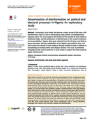 the context of elections and accountability in Nigeria. Data were collected from 60 interviews and 18 focus group discussions with key stakeholders across Nigeria’s geo-political zones. The result shows the content of social media as shaping traditional media in addition to exacerbating pre-existing ethnic and religious tensions. The study recommends strengthening the positive elements of social media to weaken the threat posed by digital disinformation." (Abstract)