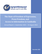 "The present report outlines key information pertaining to the rights to freedom of expression, press freedom, and access to information and findings regarding the state of these rights in the Kingdom of Cambodia over a period of a year, starting from 1 September 2021 to 31 August 2022. This annual