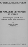 "Considérations générales (les différents moyens d'information envisagés: rôle des journaux, revues et publications européens spécialisés ; la presse africaine et sa situation ; agences de presse et correspondants de journaux africains ; le cinéma, la TV et la radio (les principales statio