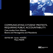 rotests, requiring public accountability: Case study from Albania, Bosnia and Herzegovina and Macedonia” examines the communication practices during these social movements/ initiatives that took place in period 2011–2015, ranging in focus from environmental issues, through education reforms, to wide socio-economic issues. The aim of the research is to understand how the government officials responded to the calls to accountability, what were the practices of citizens/activist in terms of promotion of the movement and its goals, and which role did the mainstream media took when reporting on the protests and social mobilization. Study volume contains an overview of the major results of the research in three countries, and three separate country reports. The study finds that response to protests by both media and the government was rather systemic, with both failing to act in the public interest and to promote government accountability. Protests that included less criticism of the government structures received fairer media treatment, while the more anti-government ones attracted more controversial media converge (ranging from pro-government, more balanced, to supportive of protests) and framing that involved strategies of delegitimization of protests (mainly in BiH and Macedonia). But importantly, even when particular media provided fair representation of protesters (mainly case of dismantling chemical weapons in Albania), the media reports were superficial, lacking in-depth insights and analyses and substantial demands for government accountability." (Publisher description)