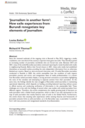 exiled Burundian journalists continued reporting for newly founded exile media in neighbouring Rwanda. Before their forced closure in 2021, these exile media had established themselves as successful outlets providing the only independent information from an otherwise blacked-out country. Based on semi-structured interviews with 10 exiled Burundian journalists conducted in Rwanda in 2020, this article exemplifies how the condition of exile impacts journalistic practice and norms, and renegotiates ideas of media professionalism. It is shown how Burundian exiled journalists display a strong personal conscience as journalists highlighting the voice of the voiceless and attempting to separate activism from their journalism. At the same time, the findings identify the main struggles of Burundian exiled journalists in maintaining operational objectivity, which depends on funding, providing balanced reporting without access to official sources and conducting verification of information in the unattainable field. These challenges are in line with the findings of several other case studies with exiled journalists from different regions. Therefore, this article complements the rapidly growing body of literature on exile journalism with a Global South perspective, which to date is not well represented on the map of exile journalism that mostly features cases of exile in the Global North. Furthermore, this article shows that situating exile experiences within existing theories and frameworks of journalism presents limits as exile journalism, as in the Burundian case, is journalism ‘in another form’ with new practices and renegotiated standards of professionalism." (Abstract)