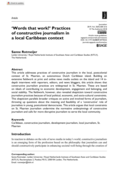 gers, this article shows that constructive journalism practices are widespread in St. Maarten. These are based on ideals of contributing to economic development, engagement and belonging, and social stability. The fieldwork, however, also revealed skepticism toward constructive journalism practices because of local political, economic, and socio-cultural constraints. This skepticism parallels broader critiques on active and involved forms of journalism, throwing up questions about the meaning and feasibility of a ‘constructive’ role of journalists in young, postcolonial democracies. This article argues that local constraints on St. Maarten journalism undermine the normative underpinnings of constructive journalism and calls for more disruptive journalism to serve the local community." (Abstract)