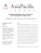 media to promote the idea of their impending return to power. This study aims to understand the (ab)use of social media by the resurgent Taliban 2.0 and to suggest ways young Afghans can utilize social media to navigate their lives under the new regime. The authors undertook a critical review of the literature to analyze the Taliban’s social media tactics in manipulating public narratives to portray themselves as the legitimate rulers of Afghans. The study finds that the Taliban’s adaptation of social media tools helped them retake control of Afghanistan by influencing public narratives in their favor. This study recommends promoting critical thinking abilities among young Afghans to utilize social media to express dissent and advocate for their rights." (Abstract)