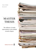 s the attitude, but less information was found on how this exactly influences the attitude. This is problematic because negative attitudes can have negative consequences for people living in the conflict zone and refugees in the host country. The aim of this research was to provide new insights in the connection between media representation and the attitude towards refugees. It focussed on the under-researched topic by answering the question ‘How does media representation of a violent conflict influence the attitude towards refugees in a host country?’ In order to answer this question, I used mixed-methods, collecting primary quantitative and qualitative data. I investigated the quantity and length of news articles, conducted a critical discourse analysis by analysing the social, discursive and linguistic practice, did a visual data analysis by looking at the images, the production and consumption, and conducted a cross-sectional survey among Dutch people." (Abstract)