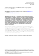 luding those from community newspapers and radio stations in South Africa, to be able to undertake this task, the South African Department of Environment Affairs in partnership with GIZ commissioned the authors to develop and deliver a four-day climate change reporting training programme. This paper presents an overview of the structure and content of the course, and details the reflections after undertaking such an endeavor." (Abstract)