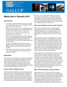 trategic Considerations for Communicating With Somalis: Role of foreign media remains extremely important. Radio is still the most widely used news medium, across all regions. Heavy access to and usage of alternative platforms opens up additional opportunities. Any communications strategy must include digital and mobile, with potentially greater short-term payoff than elsewhere in Africa." (Slide 54)