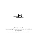 "The International Media Support (IMS) Conference, entitled ‘Friends or Foes? - Peacekeeping Forces, Humanitarian Aid and Media Development’ was held in Copenhagen on 26 and 27 November 2004. The theme of the Conference was the dilemma facing media development in the wake of peacekeeping and hum ... more